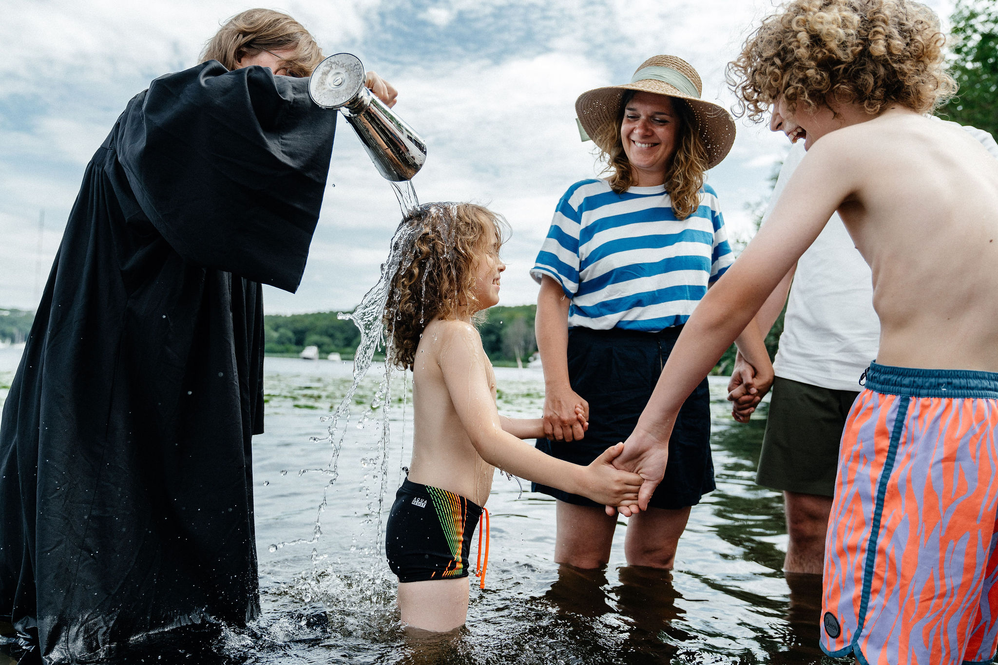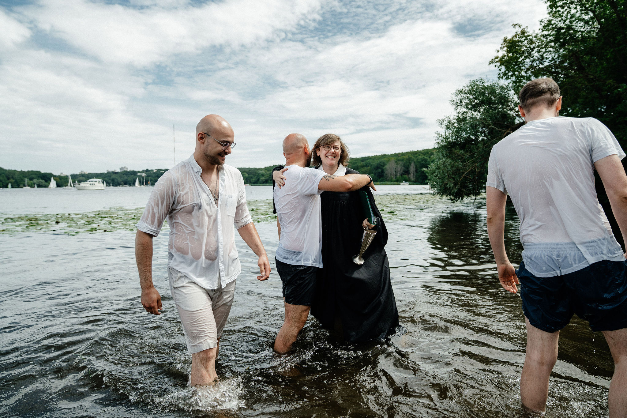 Wer sich oder seine Kinder in der Havel taufen lassen oder die Erinnerung an seine Taufe feiern möchte, ist mit Familie und Freunden herzlich willkommen. Und natürlich sind auch alle eingeladen, die einfach gern unter freiem Himmel Gottesdienst feiern. Beim Picknick im Anschluss teilen wir, was jede:r mitbringt.